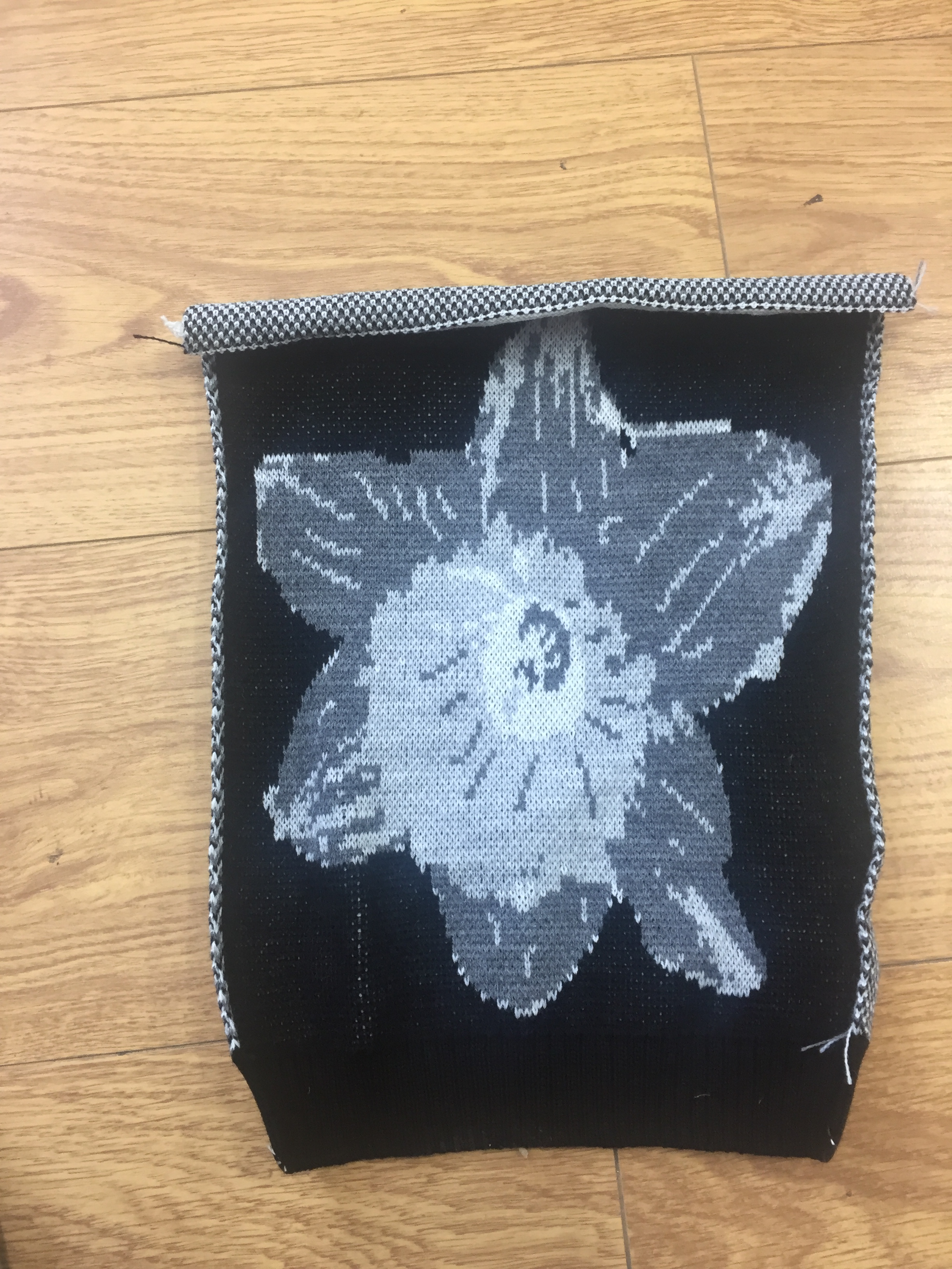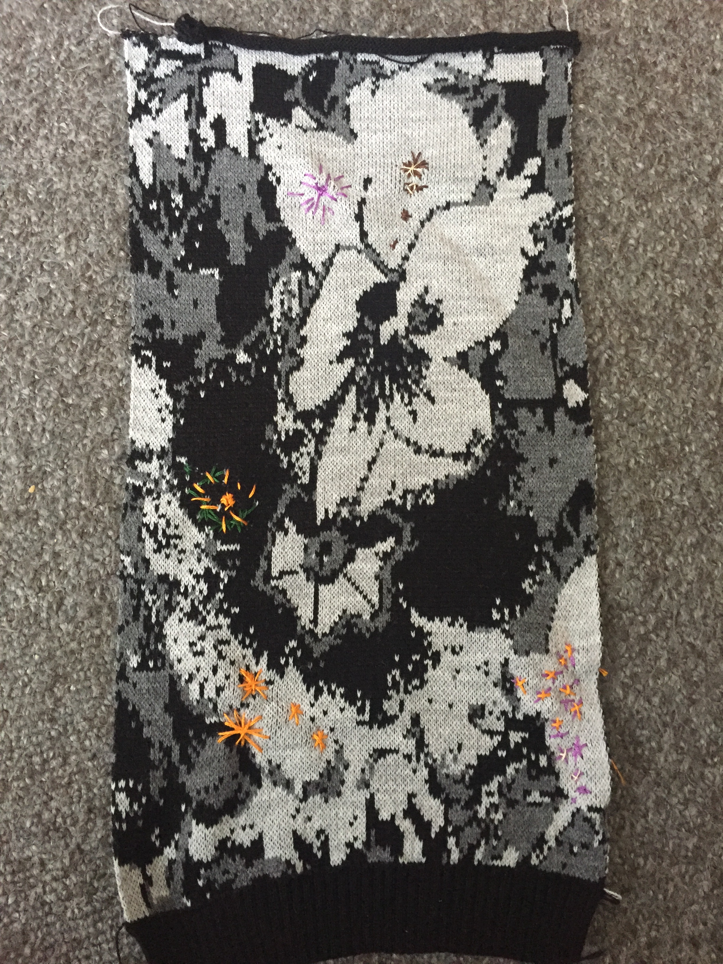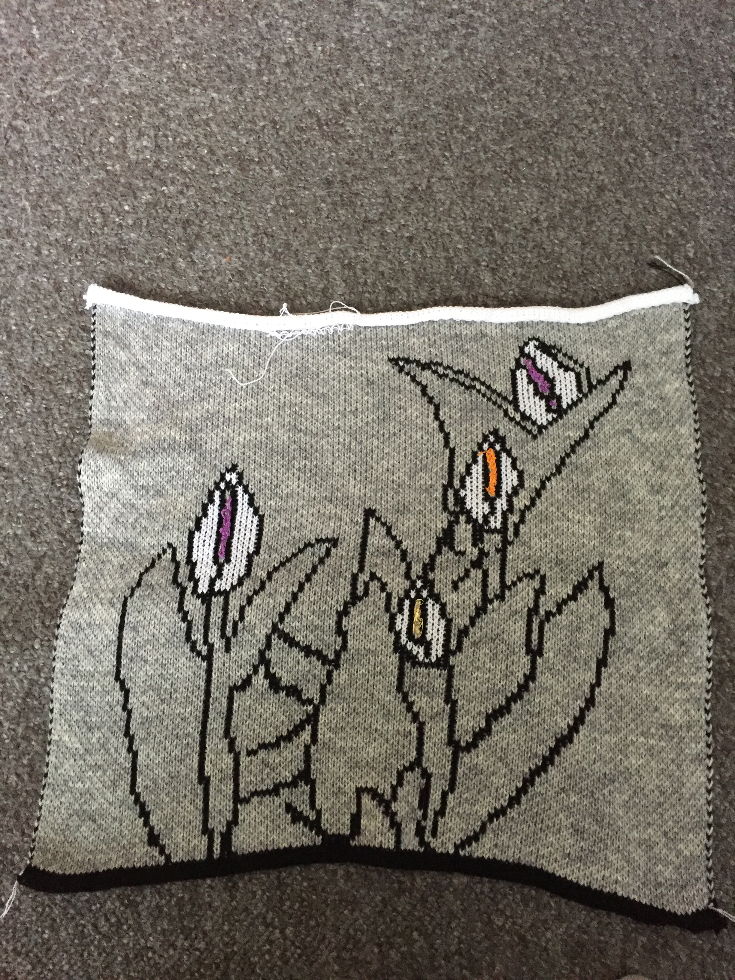 Having picked an electronic form pictures I’ve decided to literally draw with stitch: Use the graphs created and picked as a Jacquard and knit them all on the knitting machine!