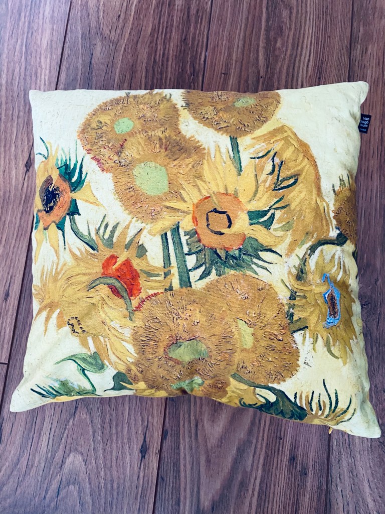 I recently bought a pillow cover: a version of Vincent Van Gogh’s legendary sunflowers printed on.