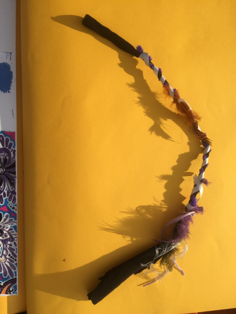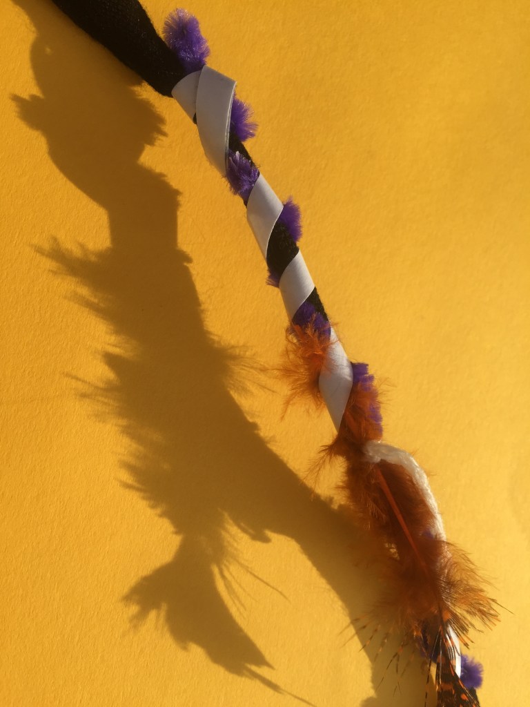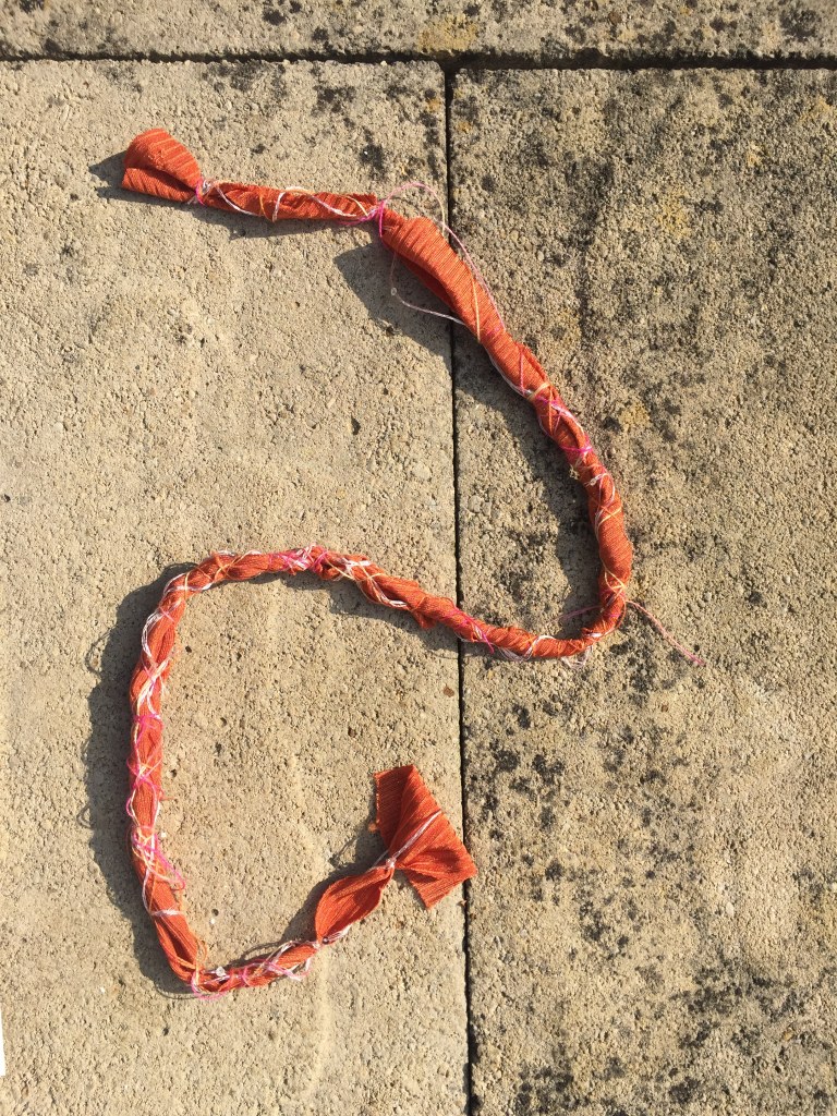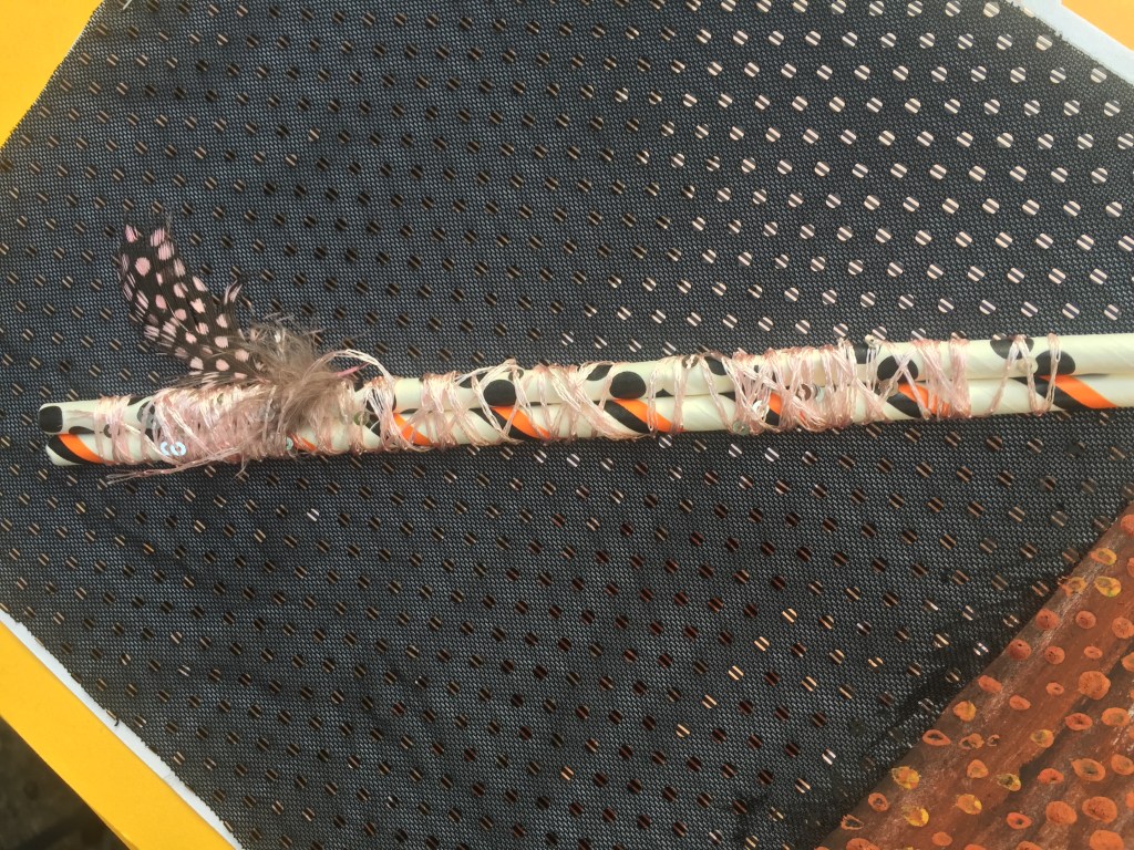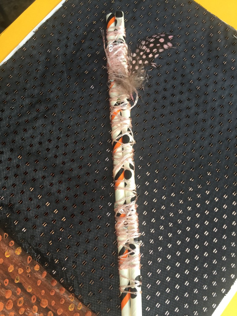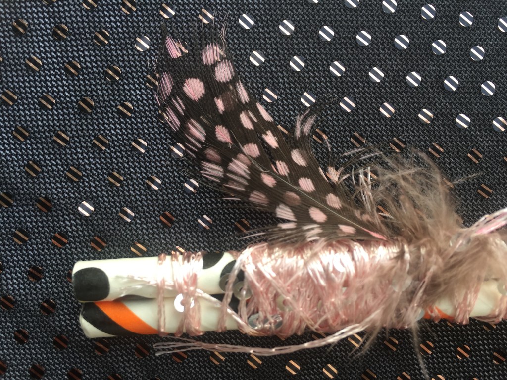 Trying to match polka dot pattern: Using yarn, feathers and straws