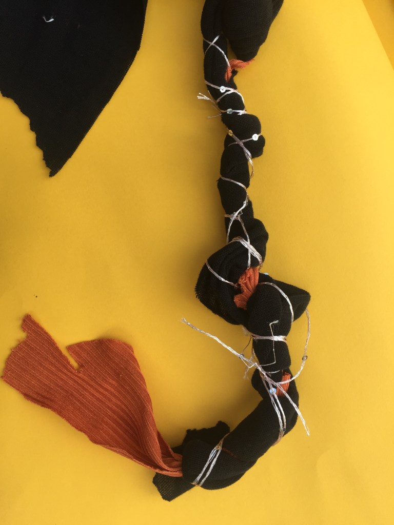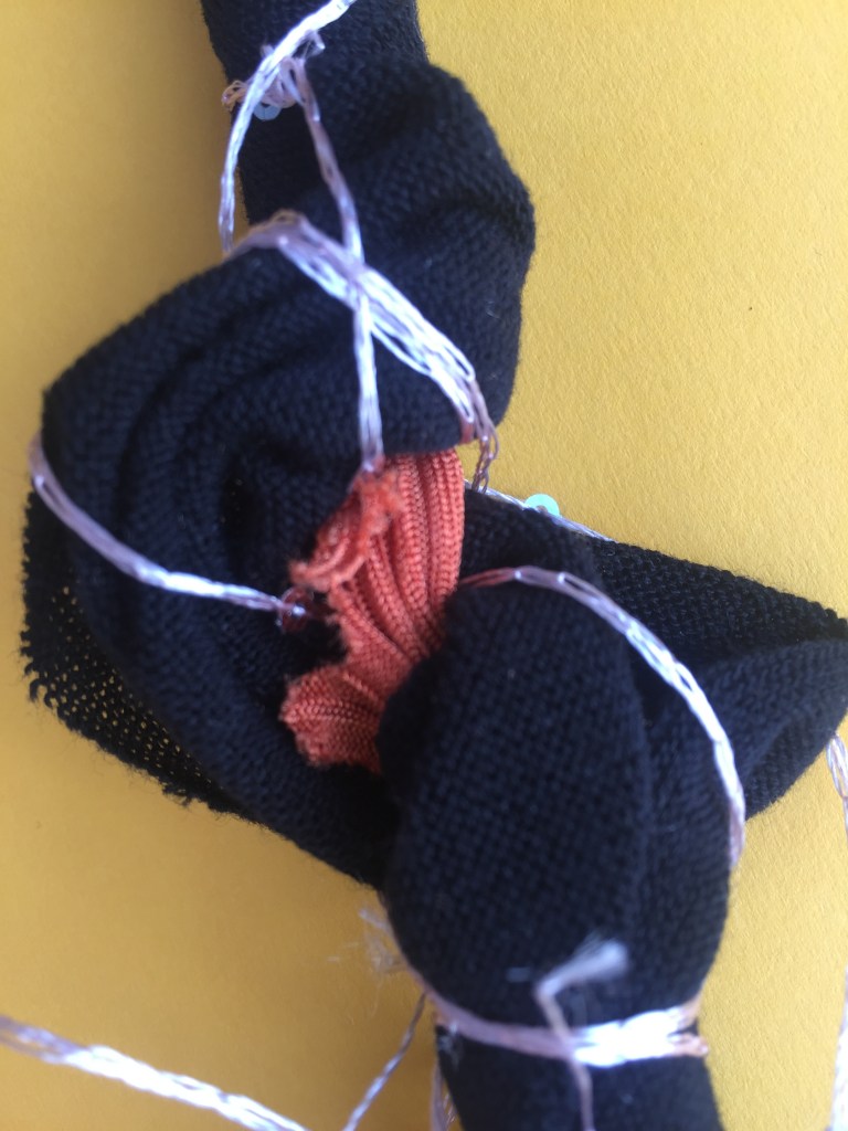 black and brick twisted fabric to match the cols marled with sequin yarn to match the fabric sequins