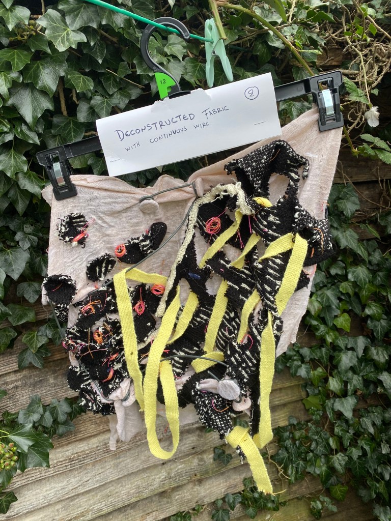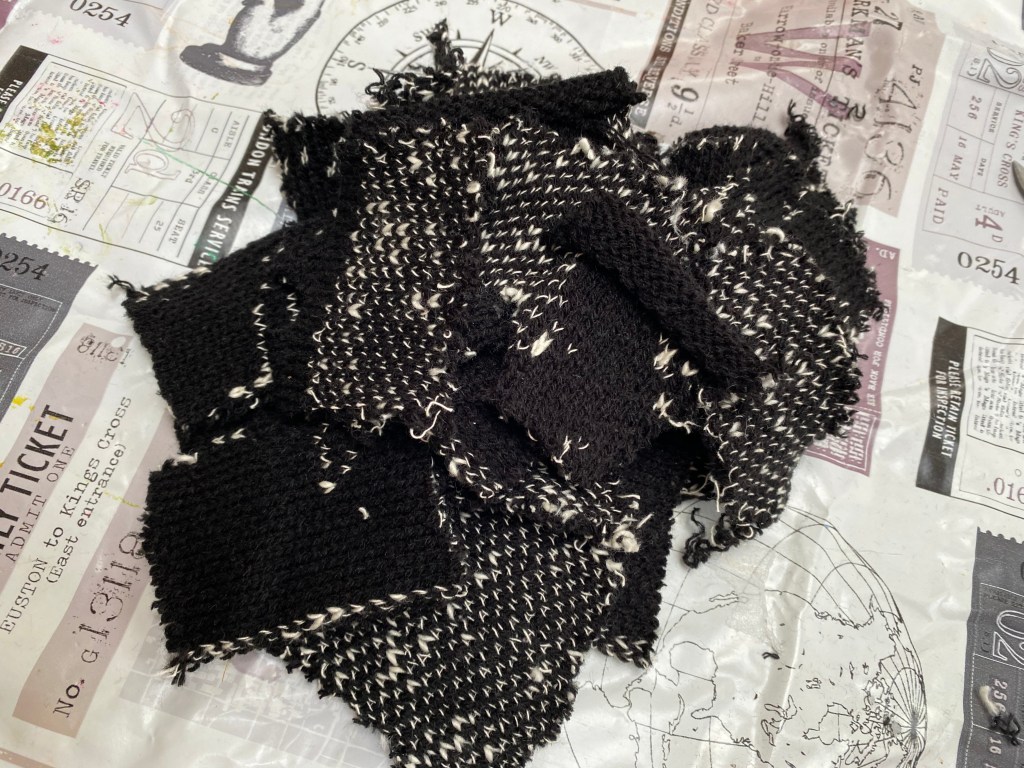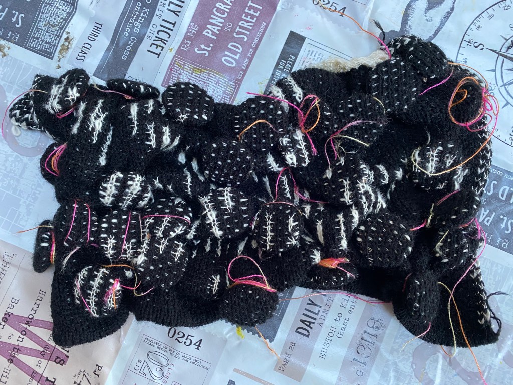 I have been working in the knitwear industry for more than 25 years . My job, as I was going down the learning curve, has been to create, innovate and demonstrate knitting surfaces. With Project 2 I realized there is a whole new perspective beyond what I was doing so far. To my great surprise, I’ve noticed where in the past I was concluding my job saying my part is finished lets move on to the next project ,I can say now ,that moment in some cases, can be the starting point for something new ;the best part is by reusing the old knit down and whilst working on a ready made fabric I may end up following different rules .What was wrong to do on the knitted piece when the garment had been knitted, could be right after all I had comprehended on assignment 2 and that point can be the annihilation of the new reworked piece with its form and consistency changed and be taken to a whole different direction .Very exciting -thinking-out-of-the-box discovery which can be explored a lot more in the future as its an alternative, an option worth to be considered.