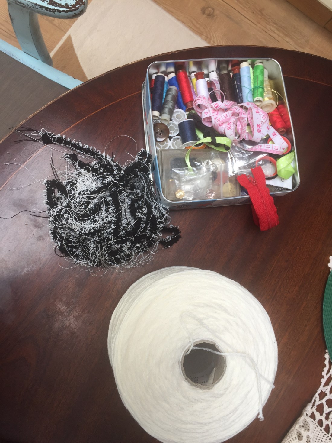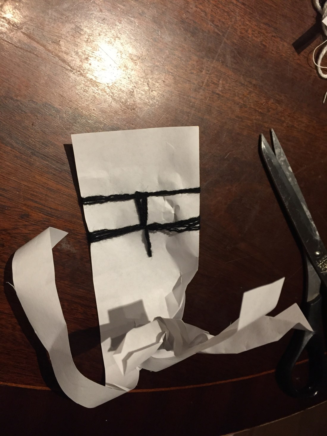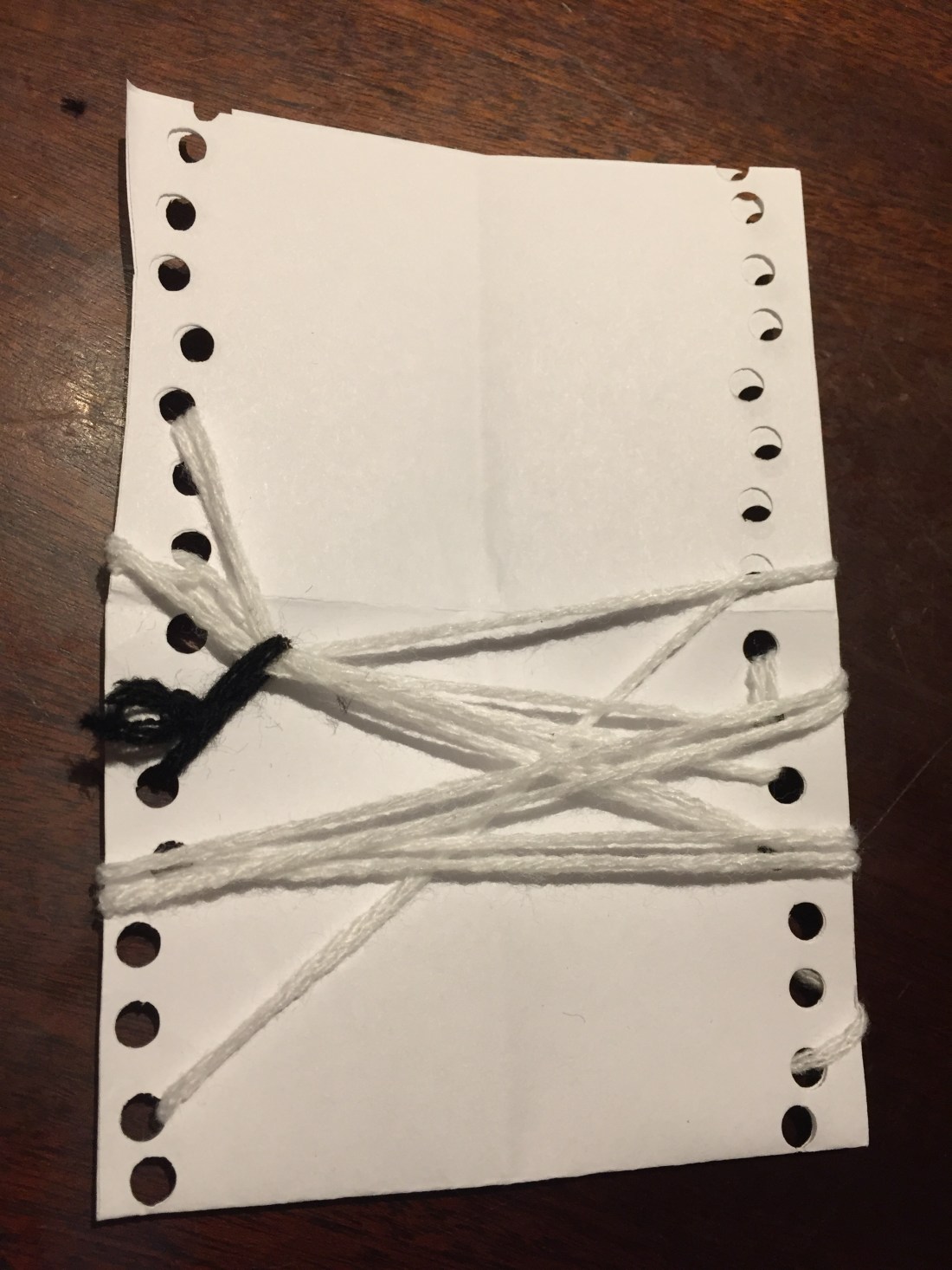 I had to use a large needle with a big hook in order to be able to feed the tape yarn through the holes of this carton paper.