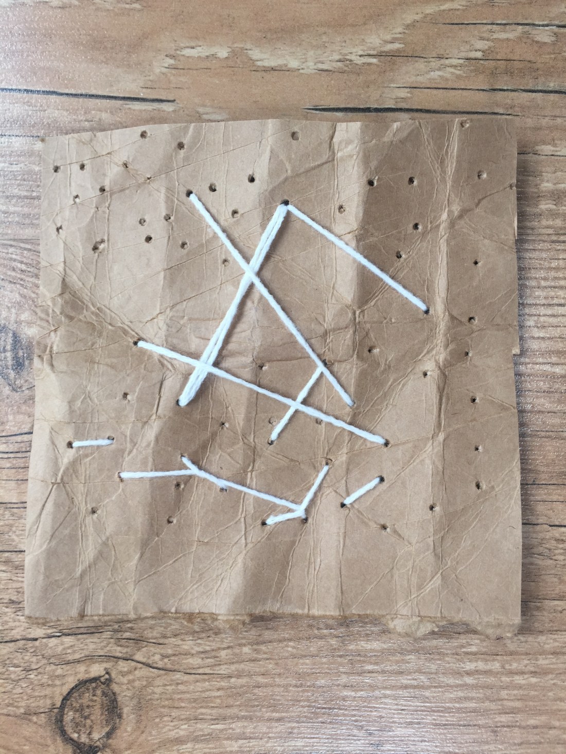 Yarn stitched across in order to create to horizontal and a vertical line