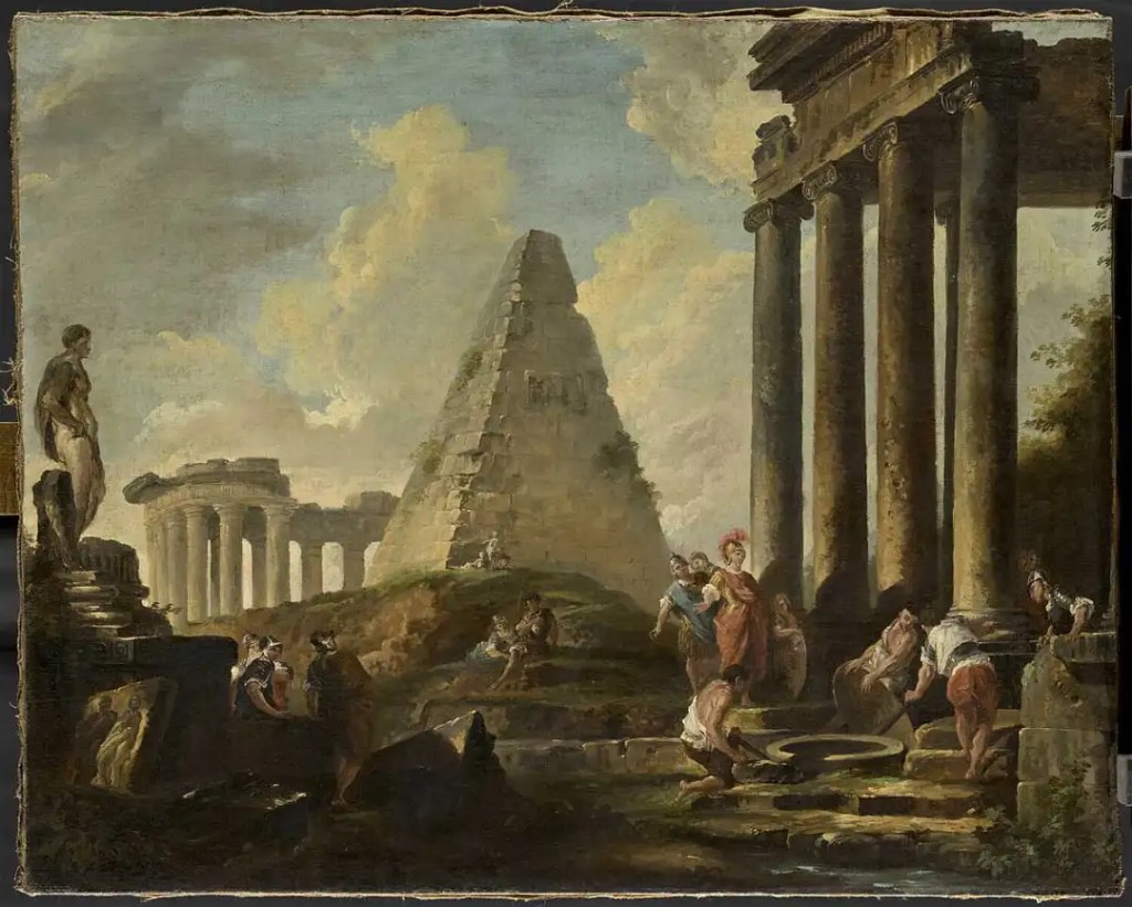 Alexander the Great at the Tomb of Achilles, by Robert Hubert, 1750-1775, via The Louvre
