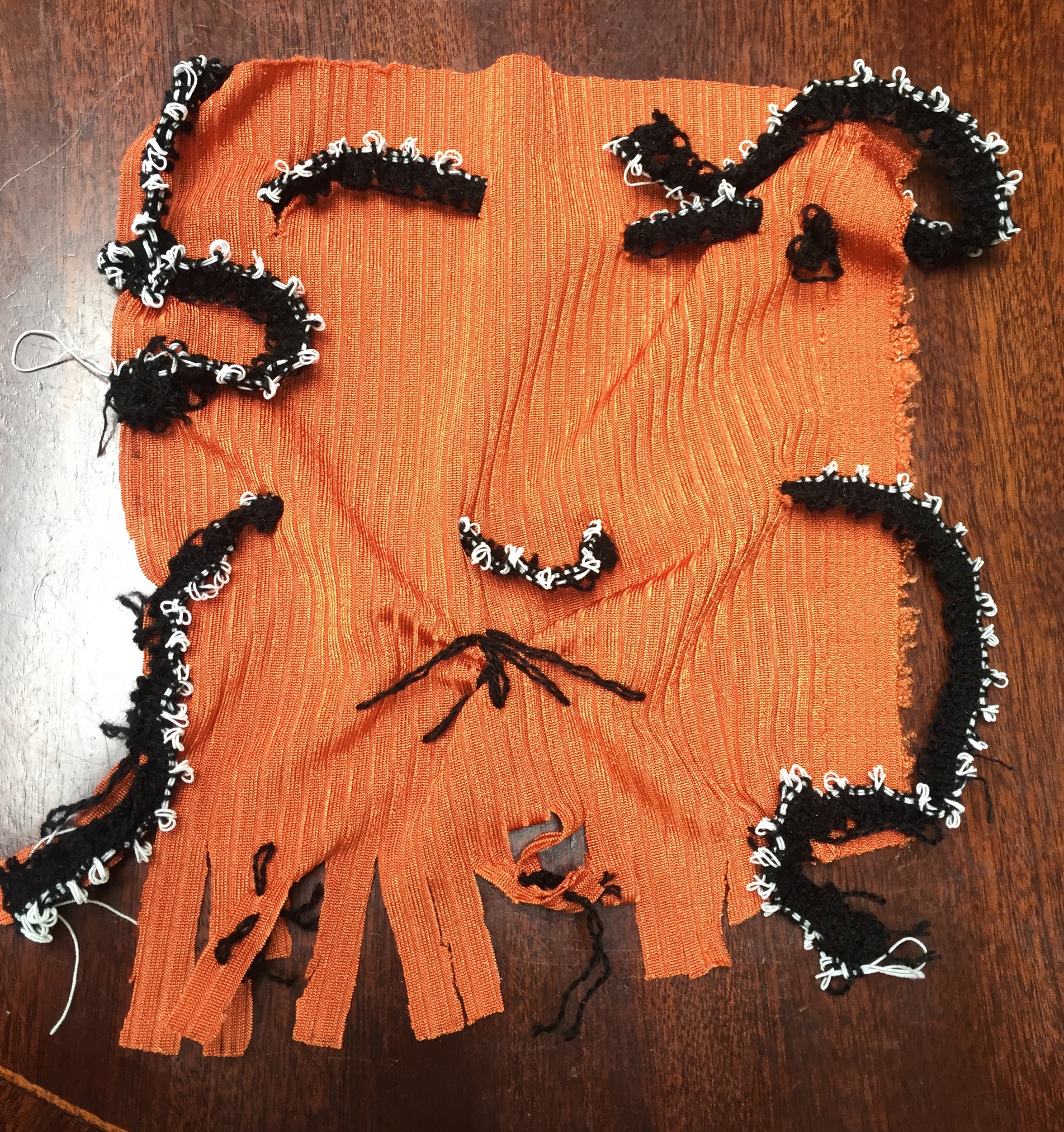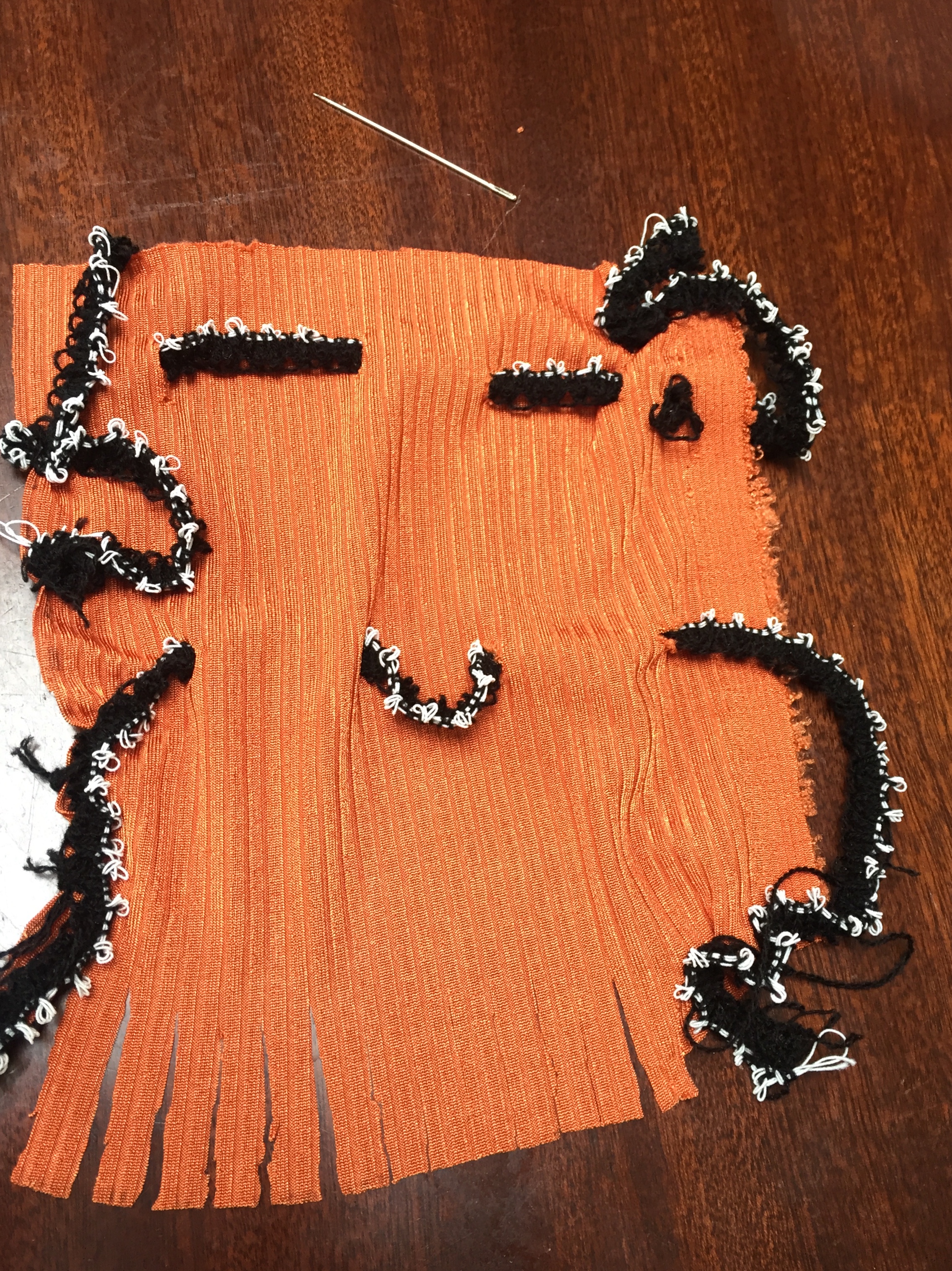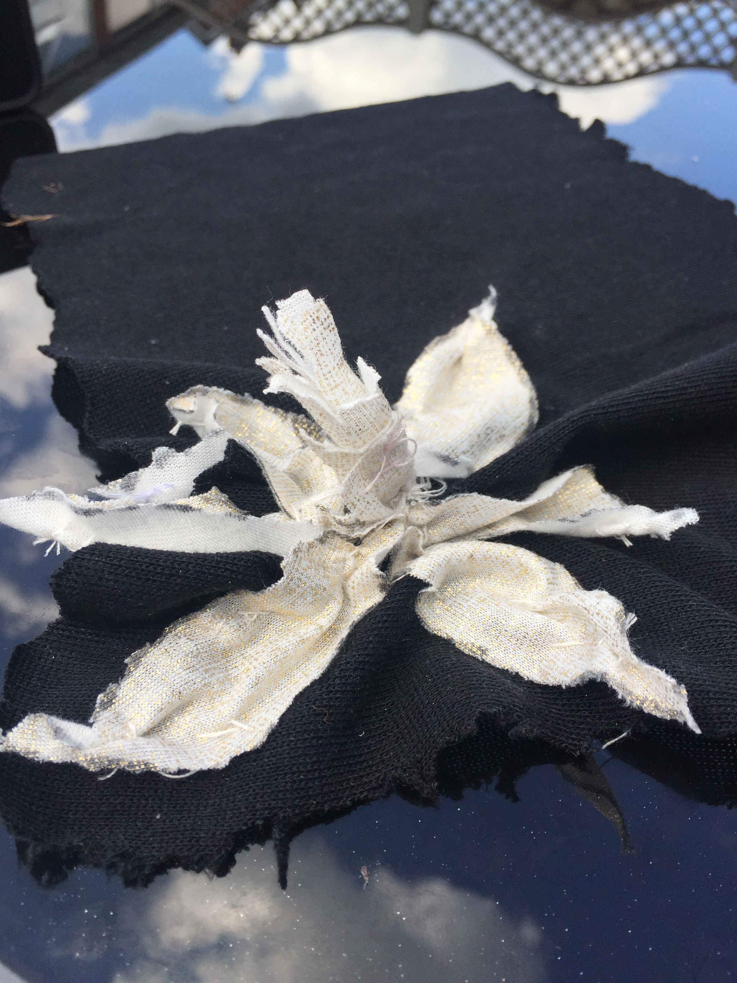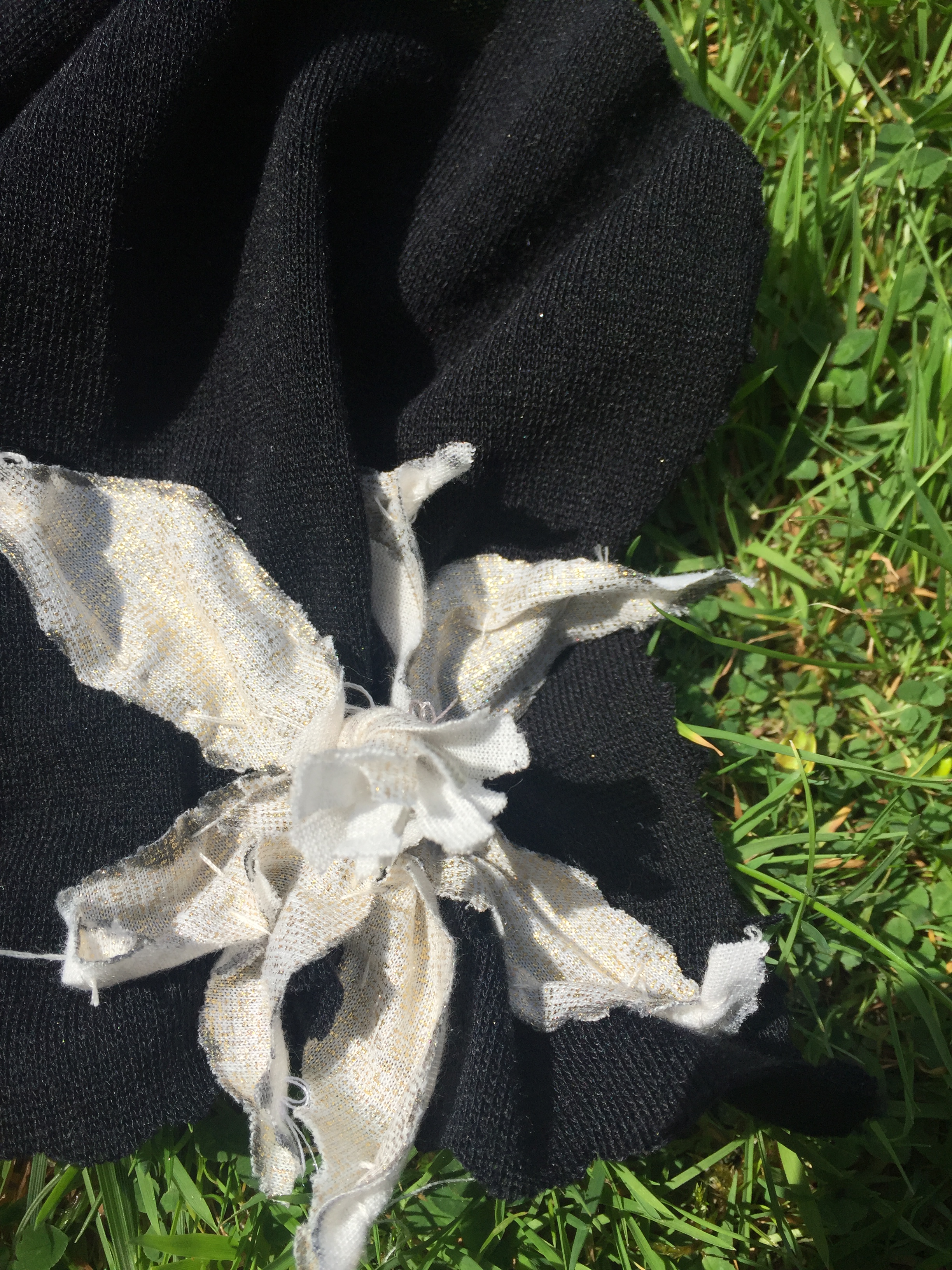 When I was sewing the flower pieces on the black garment I realized the black fabric was making pleats which made the flower stand out even better: