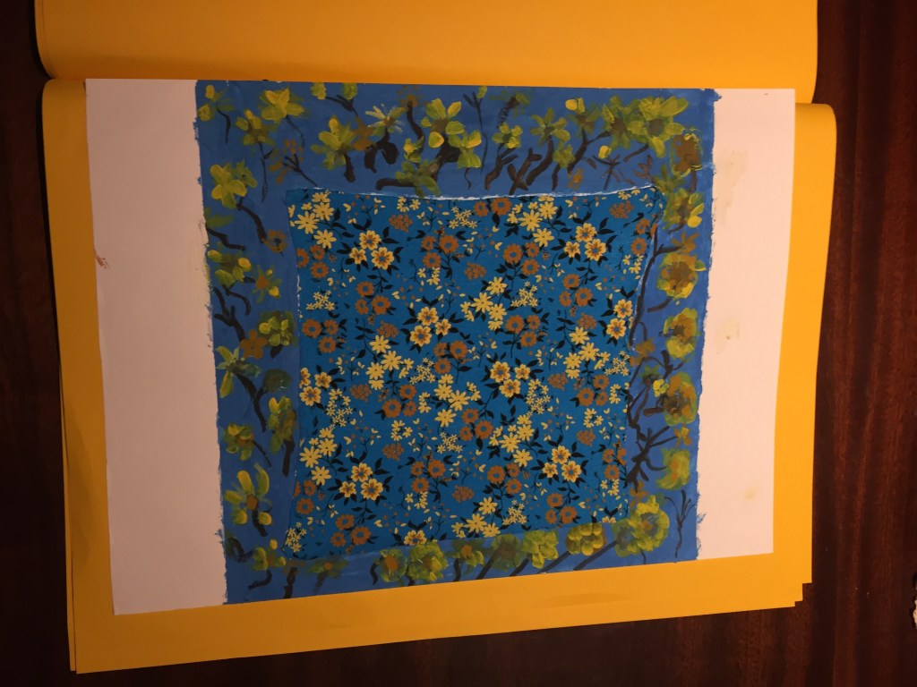 The first one is a daffodil: I’ve used a gold printed fabric and tried to create the flower by cutting and sewing all pieces together.