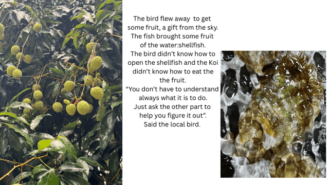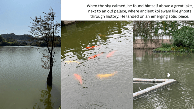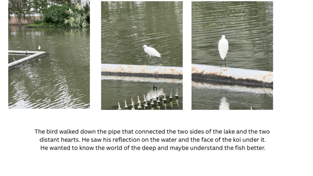 This glossary isn’t just a list of terms. It’s a map of my creative process: a personal archive of how I think, feel, and build meaning through stories. At the centre of it all is a tale I wrote: a poetic, visual, emotional narrative about a bird and a koi fish. A story not just about two creatures, but about connection, distance, love, silence, and departure.