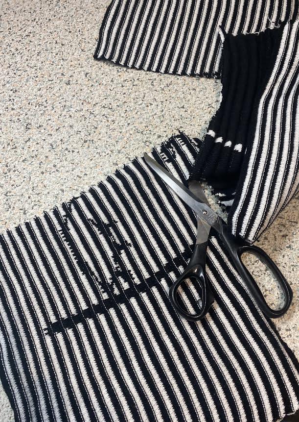 And I have cut it out in four pieces. As I said before, I find the rear part of the fabric very interesting.