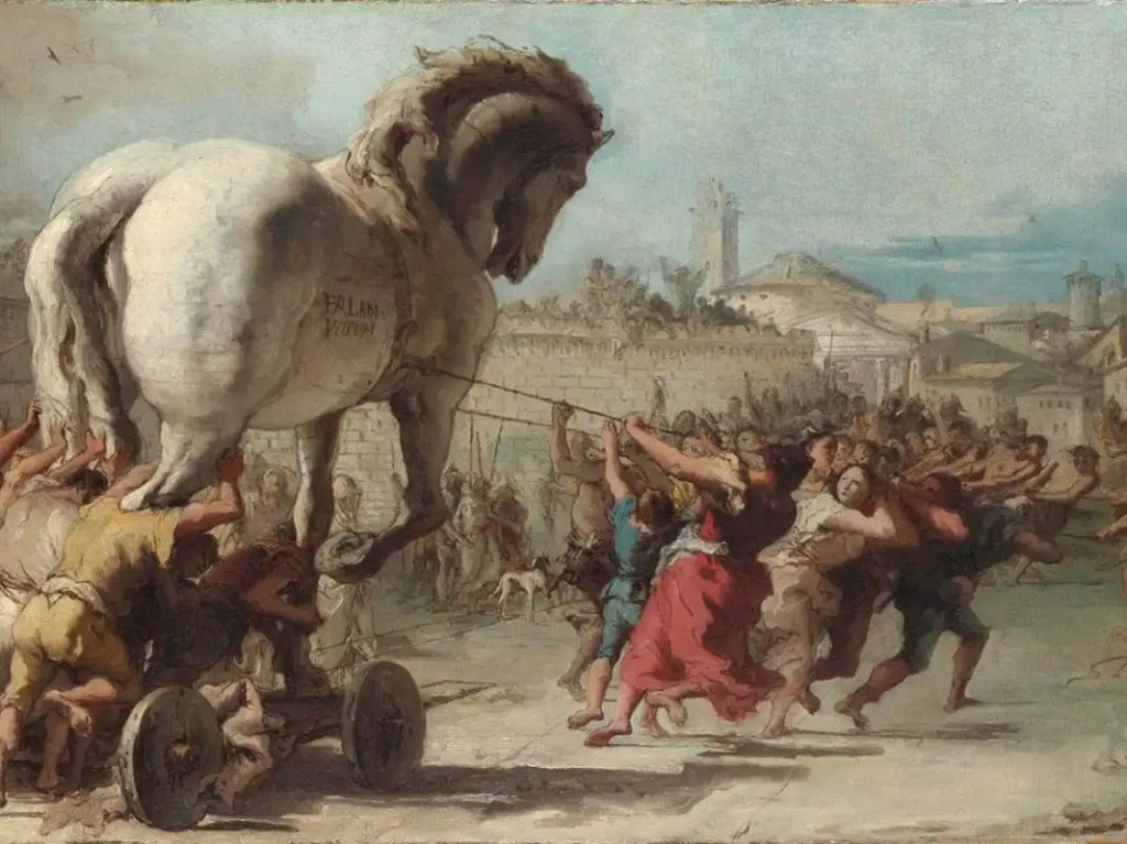 The Procession of the Trojan Horse into Troy by Giovanni Domenico Tiepolo, around 1760, via the National Gallery, London
