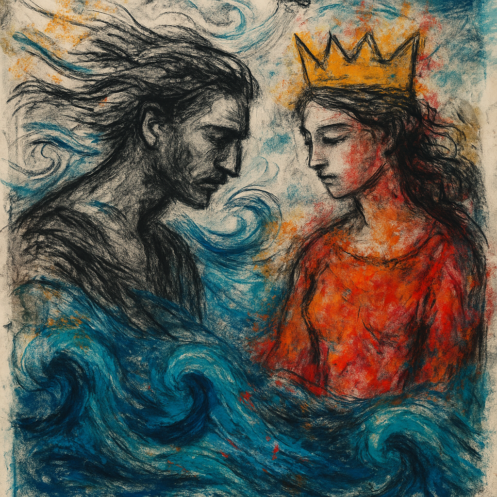 AI-generated, a single drawing of a man staring at the sea, empty-handed but full-hearted, guided the tone. This image embodied longing, restraint, and acceptance, and only after visualising this could I put it into words.