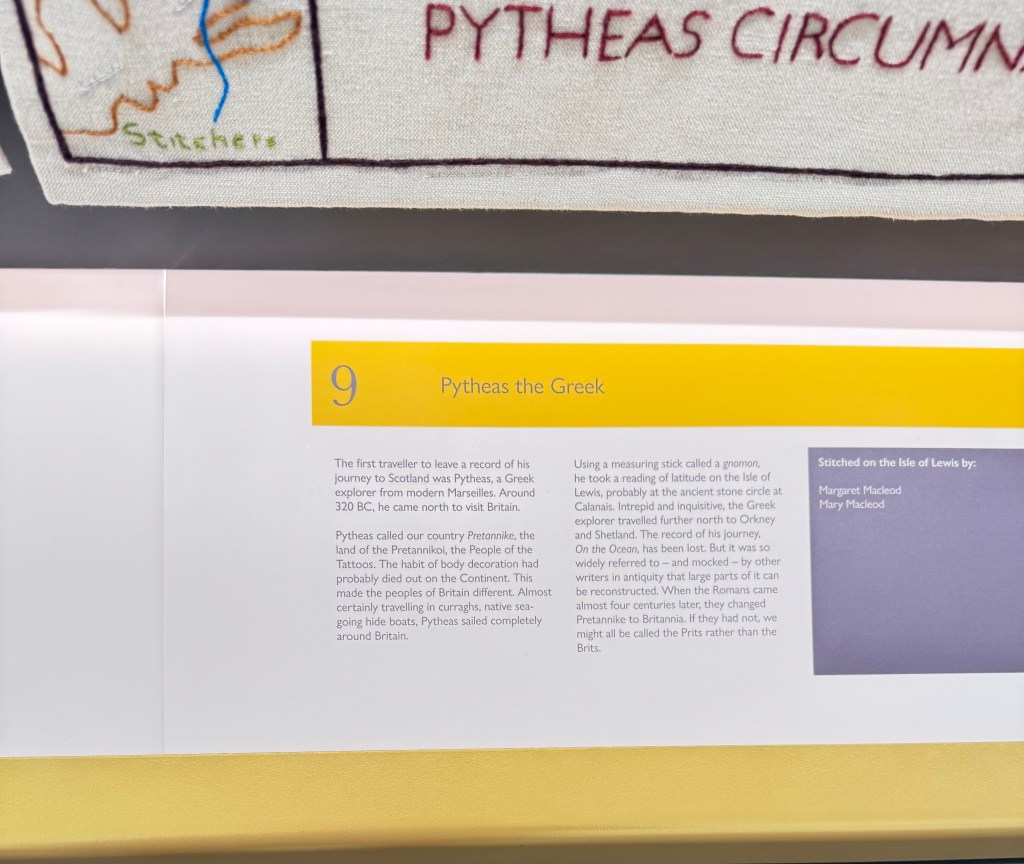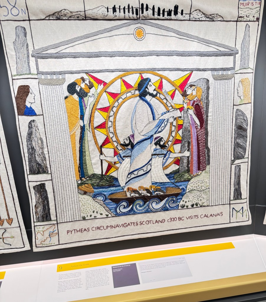 While visiting the Great Tapestry of Scotland in Galashiels, I encountered the story of Pytheas the Greek, an ancient explorer who travelled north from Marseille around 320 BC and recorded one of the earliest accounts of Britain. Seeing this narrative of a Greek traveller reaching the northern seas resonated strongly with my own reflections on migration, exploration and storytelling.
